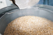 Kobieta wylewa płatki owsiane, aby domowej roboty pączek przepis