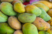 Zbliżenie kolorowe stoisko owocowe z guawy i mango