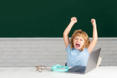 Zdjęcie "Wracam do szkoły i do domu. Szczęśliwego ucznia na lekcji. Uczeń w klasie w dniu poznania. Czas do szkoły." może być wykorzystywane do celów osobistych i komercyjnych zgodnie z warunkami zakupionej licencji Royalty-free. Obraz jest dostępny do pobrania w jakości wysokiej rozdzielczości do 5760x3840.
