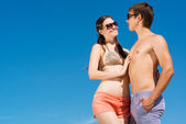 para na plaży - kobiety w bikini opalanie