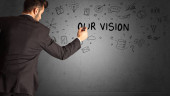 biznesmen rysunek kolorowe żarówki