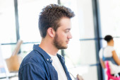 Zdjęcie "mężczyzna nastolatek posiadania stałego książki w nowoczesne szkło budowlane" może być wykorzystywane do celów osobistych i komercyjnych zgodnie z warunkami zakupionej licencji Royalty-free. Obraz jest dostępny do pobrania w jakości wysokiej rozdzielczości do 5760x3840.