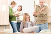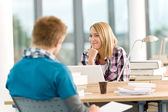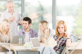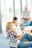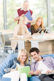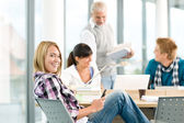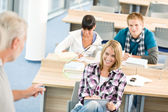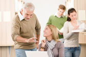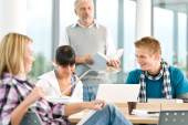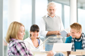 liceum - trzech studentów z profesorem