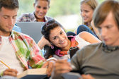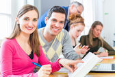 Grupa studentów studiów w klasie w liceum z profesorem