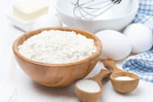 mąki, soli, cukru, masła i jaj do pieczenia naleśników