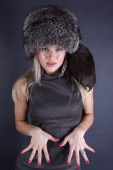 dziewczyna z zielonym jabłkiem w niebieskie światło na czarnym tle