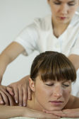 luksusowy opieki - kobieta powrót masażu w centrum odnowy biologicznej