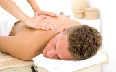 człowiek o luksusowy masażu w centrum odnowy biologicznej z powrotem