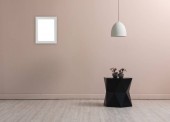 Koncepcja lampy dekoracyjnej w pomieszczeniu, ścianie i wazonie roślin, ramka zielony stolik kawowy.