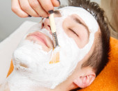 męskie kosmetyki - Maseczka na twarz w luksusowym centrum odnowy biologicznej