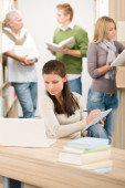 Biblioteka liceum - Student z laptopem siedzącym przy biurku