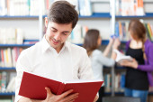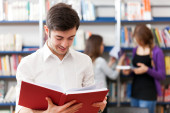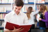 szkolna biblioteka - student z książki