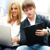 komputer tablet dotykowy ekran - grupa uczniów w bibliotece