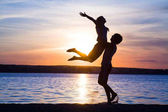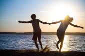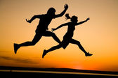 Zdjęcie "Szczęśliwa para w skok" może być wykorzystywane do celów osobistych i komercyjnych zgodnie z warunkami zakupionej licencji Royalty-free. Obraz jest dostępny do pobrania w jakości wysokiej rozdzielczości do 5760x3840.