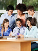dotykowy ekran komputera typu tablet - uczniów w bibliotece