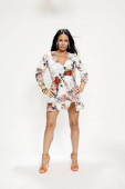 Zdjęcie "Atrakcyjna Europejka z czarnymi włosami i okularami pozująca w studio na odosobnionym tle. Styl, trendy, koncepcja mody." może być wykorzystywane do celów osobistych i komercyjnych zgodnie z warunkami zakupionej licencji Royalty-free. Obraz jest dostępny do pobrania w jakości wysokiej rozdzielczości do 5760x3840.