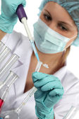 Eksperyment z wirusem grypy - naukowiec w probówce laboratoryjnej