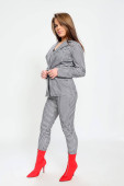 Atrakcyjna Europejka z czarnymi włosami i okularami pozująca w studio na odosobnionym tle. Styl, trendy, koncepcja mody.