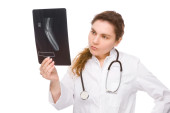 kobieta lekarz z x-ray i telefon, sprawdzanie wyników