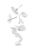 Latające czyste zastawy stołowe na białym tle