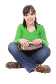 uśmiechający się gospodarstwa książka na białym tle nastolatek
