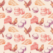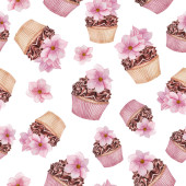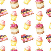 Akwarelowy wzór tortu bez szwu. Ręcznie rysowane słodkie pieczenia ilustracja do tkaniny, tapety.