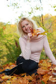 jesień zachód park - czerwone włosy kobieta moda w przyrodzie