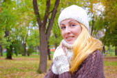 jesienią zachód park - czerwone włosy kobieta moda