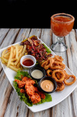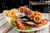 Płytka gorących żeberek wieprzowych przygotowana na grillu z sosem grillowym na łożu ze świeżej sałaty