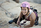 kobieta unosi się na skale
