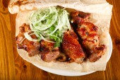 Grillowana jagnięcina z grilla serwowane warzywa i cebula