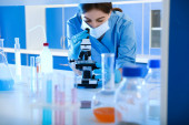 Mikroskop laboratoryjny - kobieta badania medyczne