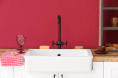 Nowoczesne meble z piekarnikiem elektrycznym w pobliżu ściany kolor w kuchni