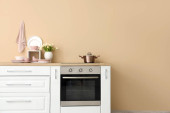 Nowoczesne meble z piekarnikiem elektrycznym w pobliżu ściany kolor w kuchni