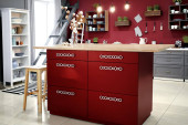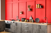 Nowoczesne meble z piekarnikiem elektrycznym w pobliżu ściany kolor w kuchni