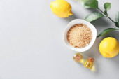 Miska ze smaczną quinoa, masło i czosnek na tle grunge