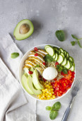 Zdjęcie "Miska ze smaczną sałatką z komosy na tle koloru" może być wykorzystywane do celów osobistych i komercyjnych zgodnie z warunkami zakupionej licencji Royalty-free. Obraz jest dostępny do pobrania w jakości wysokiej rozdzielczości do 5760x3840.