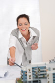 młody architekt w okularach w nowoczesne biuro architektoniczne model