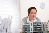 młody architekt w okularach w nowoczesne biuro architektoniczne model