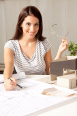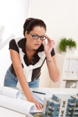 młody architekt w okularach w nowoczesne biuro architektoniczne model