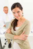architekt kobiet posiadających plany i okulary w urzędzie