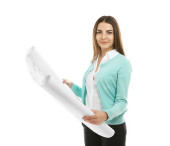 uśmiechający się architekt kobiet posiadających plany