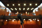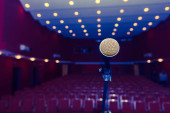 Zdjęcie "zbliżenie mikrofonu w teatrze z rozmytymi fotelami w tle. miejsce na tekst. 3d renderowanie" może być wykorzystywane do celów osobistych i komercyjnych zgodnie z warunkami zakupionej licencji Royalty-free. Obraz jest dostępny do pobrania w jakości wysokiej rozdzielczości do 5760x3840.