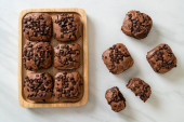 ciemne czekoladowe ciasteczka z czekoladowymi frytkami na wierzchu