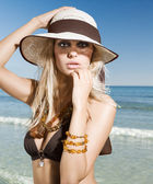 atrakcyjny blond kobieta relaksujący słoneczny dzień