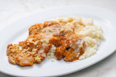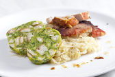 mięso drobiowe pieczone z bekonem i serem podawane z kuskusem