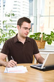 nowoczesne biznesmenem z laptopa siedząc w biurze