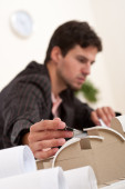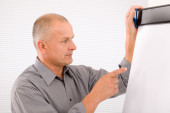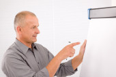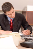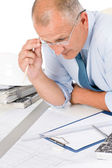nowoczesne biznesmenem z laptopa i gazetę siedząc w biurze