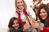 dwa młoda kobieta z szampana i choinki