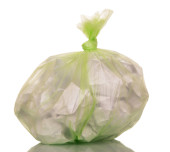 śmieci niebieski worek na białym tle na białym tle.